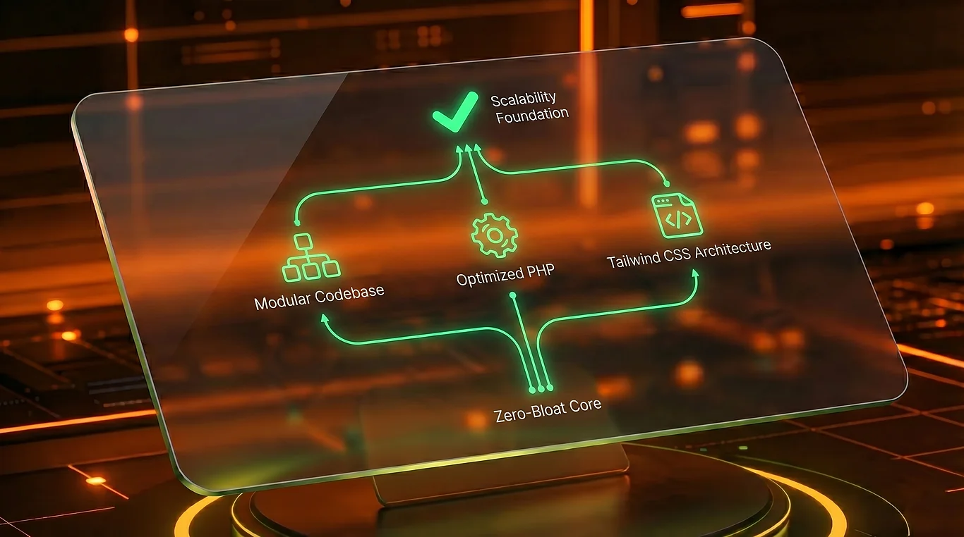We write every theme from scratch using WordPress native hooks and TailwindCSS utility classes. No Elementor. No Divi. No GeneratePress. Just clean, purposeful code that outputs exactly what the page needs — nothing more.